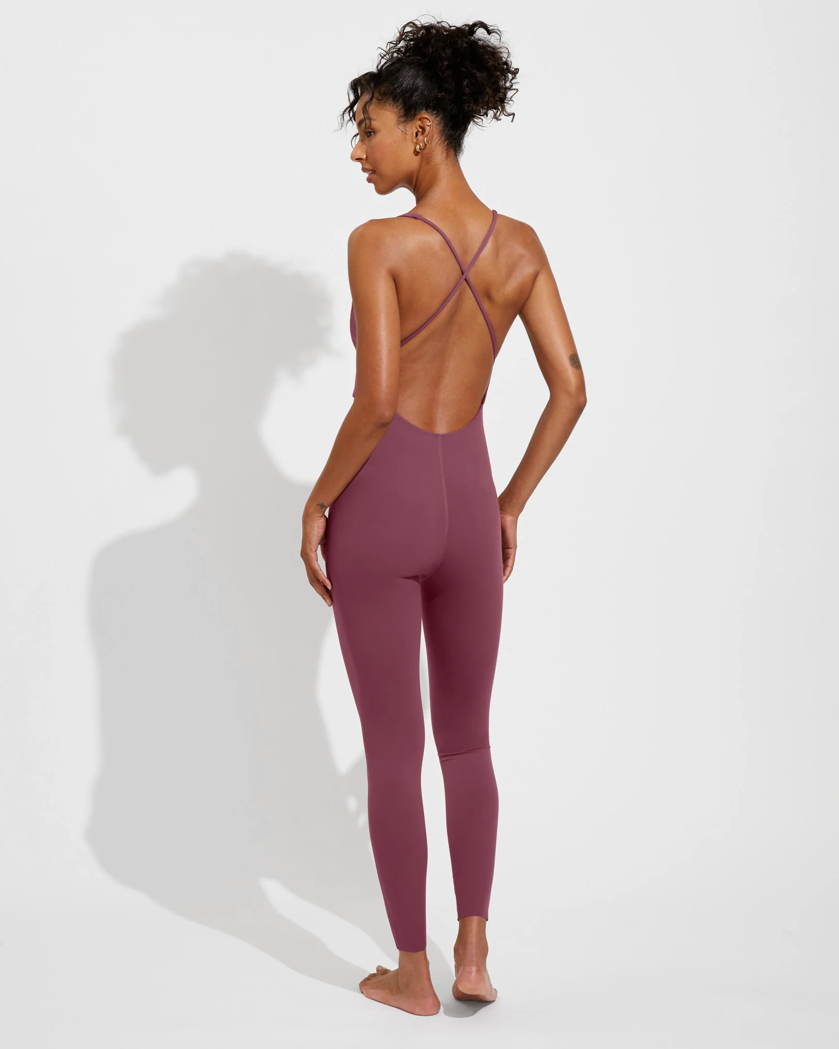 An open back, plunging front, super soft straps, no dig hem - this sweat ready playsuit keeps you looking and feeling held together.